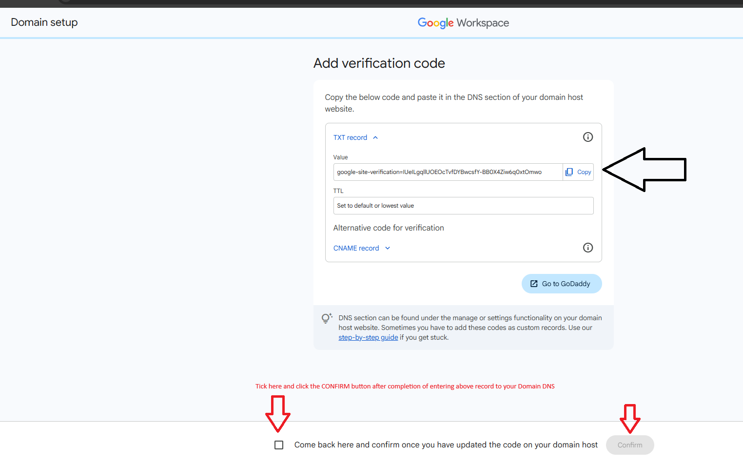 4. Copy the value for TXT record. (i.e. google-site-verification-xxxxxxxx)