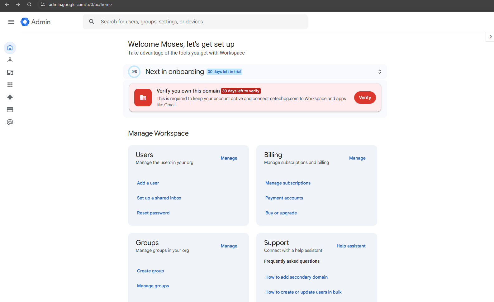 30. You can then setup other users for your organization and setup the organization settings for your Google Workspace.